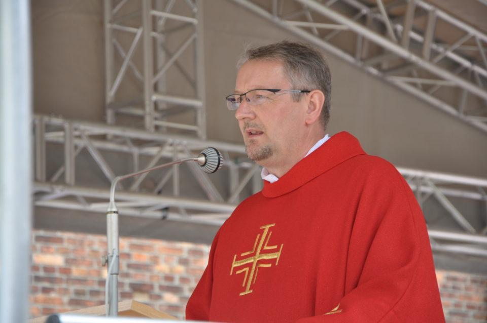 Następnie wierni w uroczystej pielgrzymce udali się do byłego obozu zagłady, aby z kapłanami diecezji bielsko-żywieckiej i zaproszonymi gośćmi celebrować Najświętszą Eucharystię, której przewodniczył ks. Bp. Piotr Greger, biskup pomocniczy.